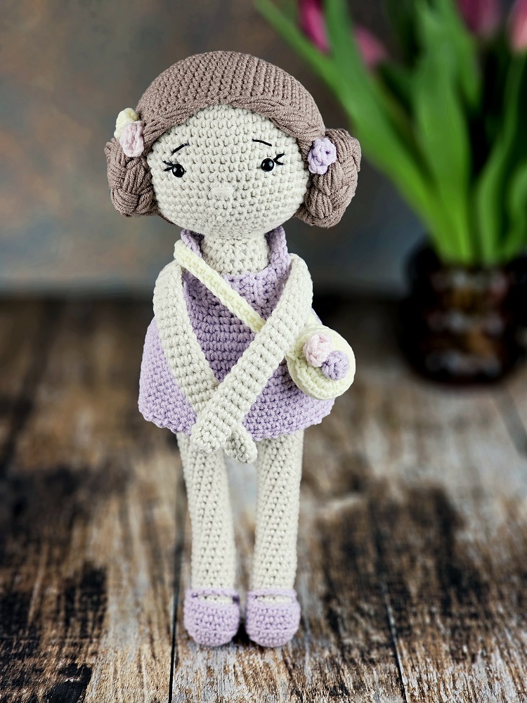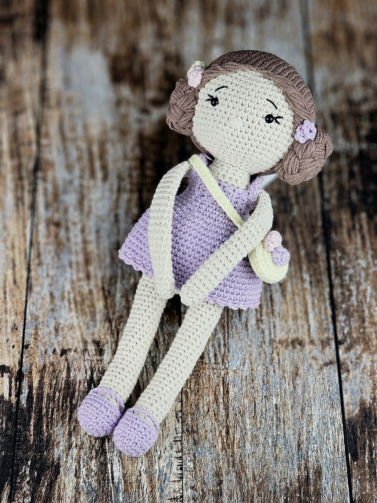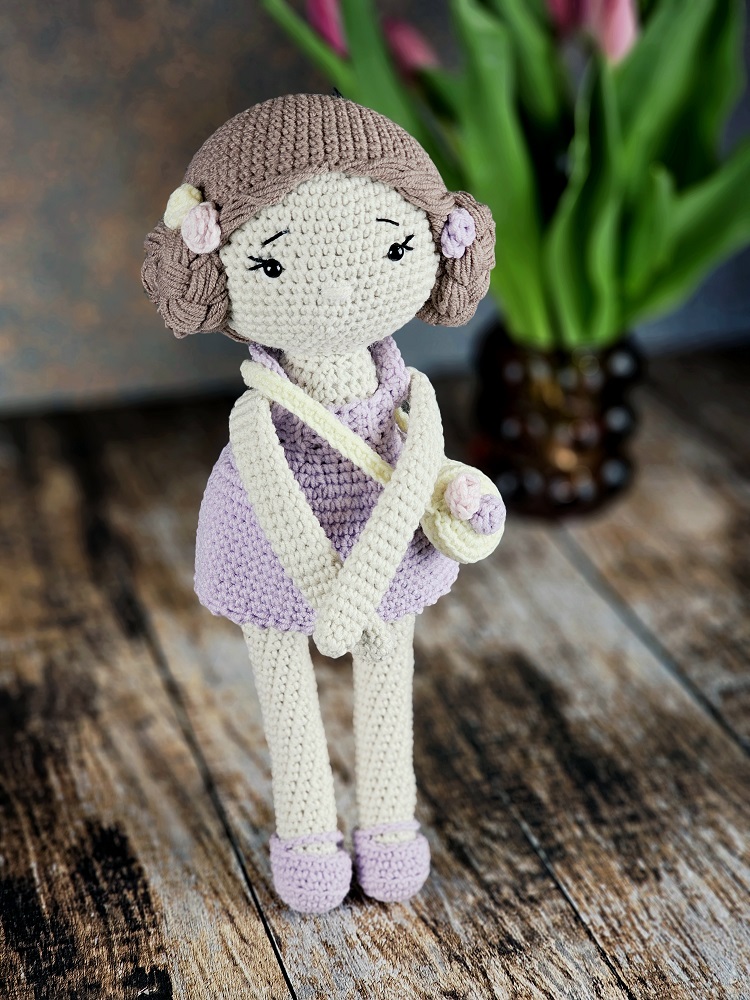 Lalka w sukience na szydełku. Wykonana z włóczki YarnArt Jeans. Posiada wypełnienie antyalergiczne.