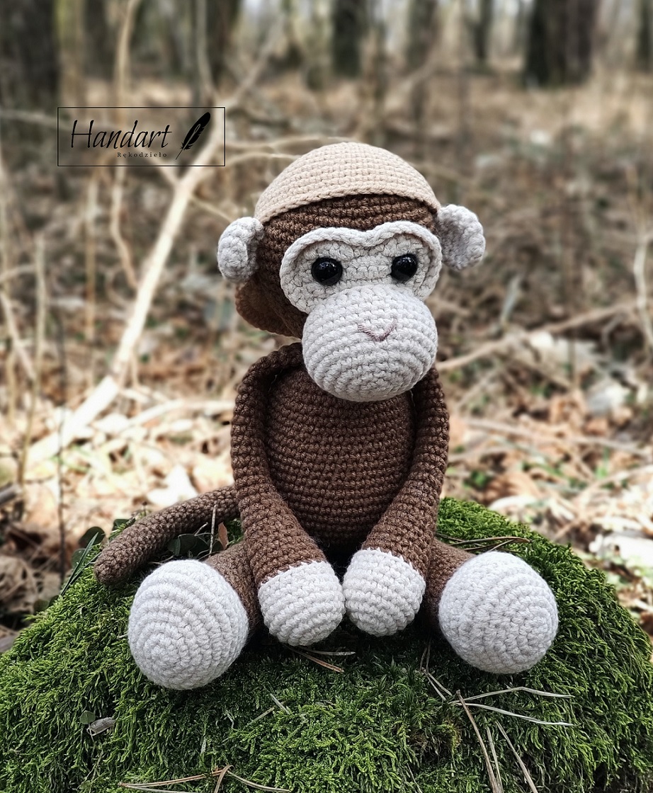 Oto małpka Tytus w czapeczce. Wykonana na szydełku z włóczki YarnArt Jeans. Posiada wypełnienie antyalergiczne.
