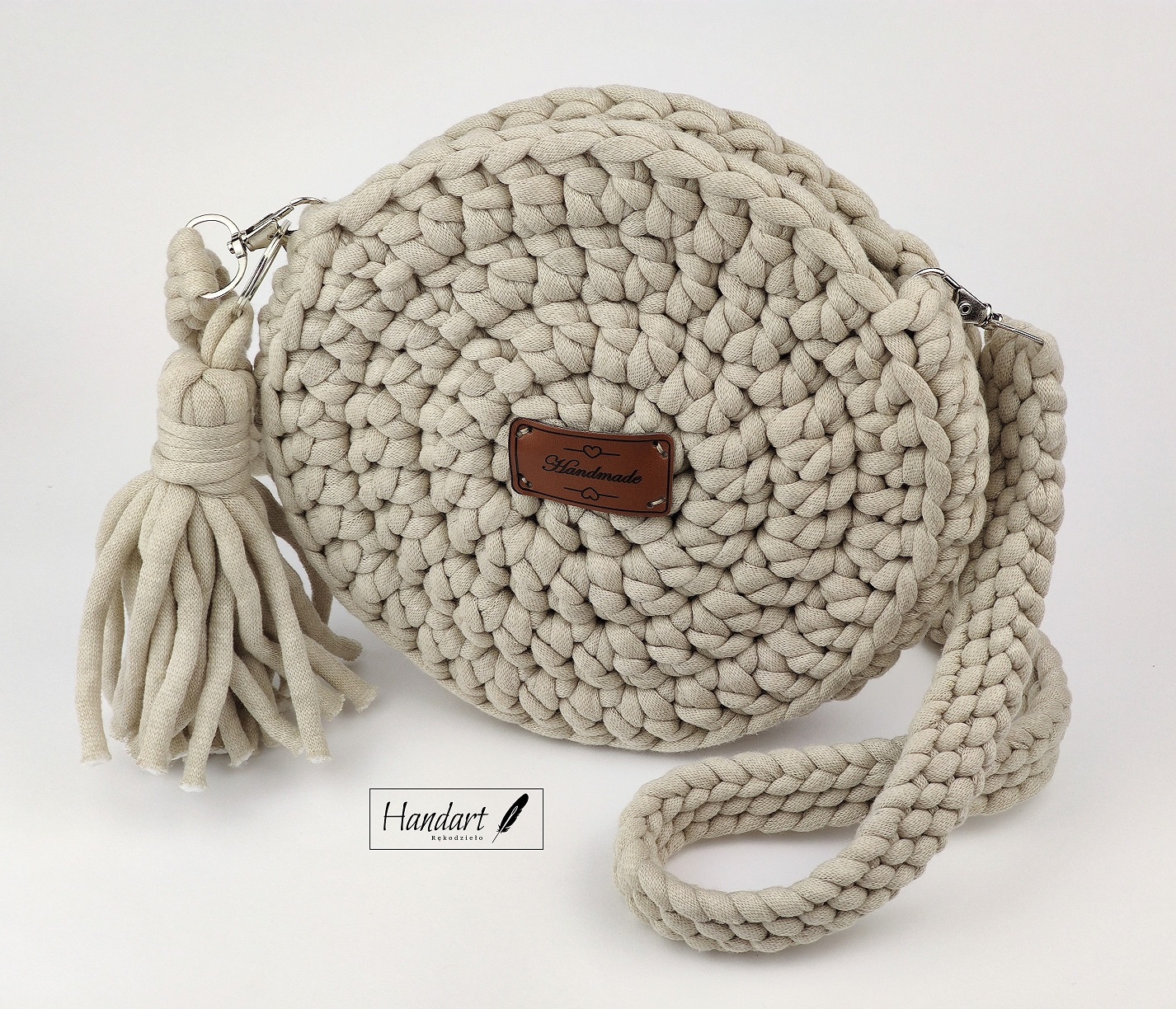 Torebka ze sznurka bawełnianego. Wymiary: średnica 21 cm.