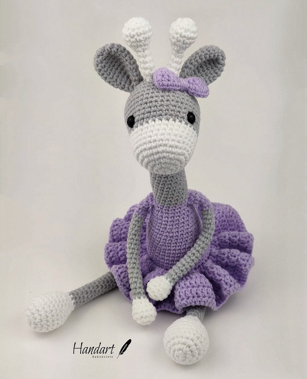 Kolory: Szara żyrafka w fioletowej sukience.